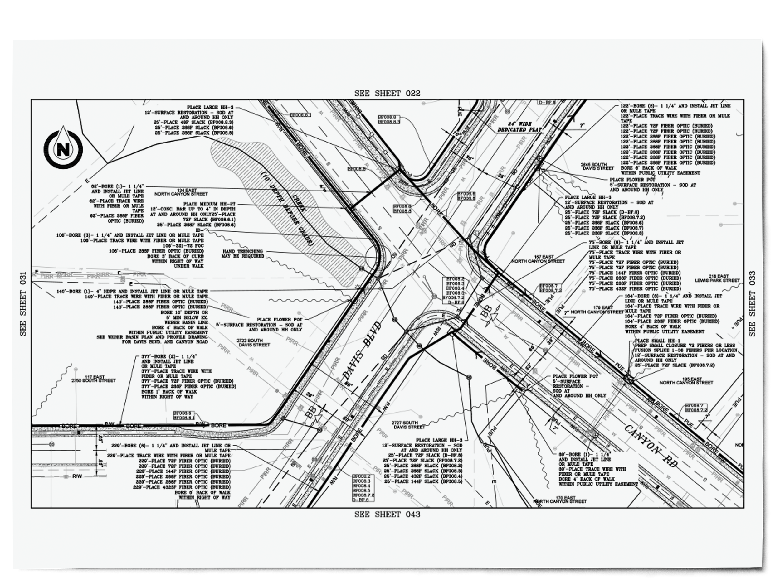 Embedded ROW and PUE research directly into the prints so designs stayed in-bounds, approvals weren’t guesswork, and field redlines could be made with confidence